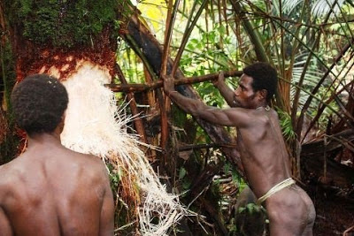 Penduduknya makan umbi, atau mengambil kelapa hutan, berburu kelinci dan babi, tidak mengenal sistem tani.