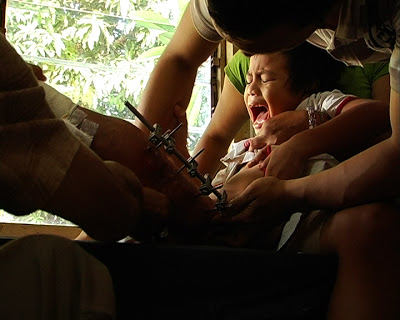 setiap kali akan ganti perban untuk merawat luka yang masih bernanah (padahal sudah dirawat 2 bulan di RSCM) |