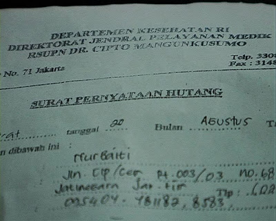 Hanya saja, tidak semua hutang perawatan mampu ia bayar. Baginya, yang penting adalah keluar dari Rumah Sakit. |