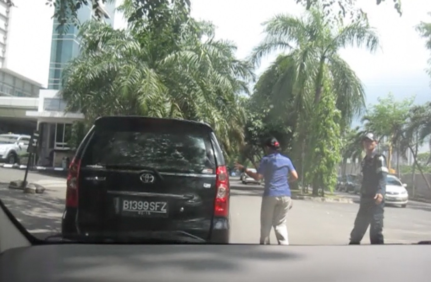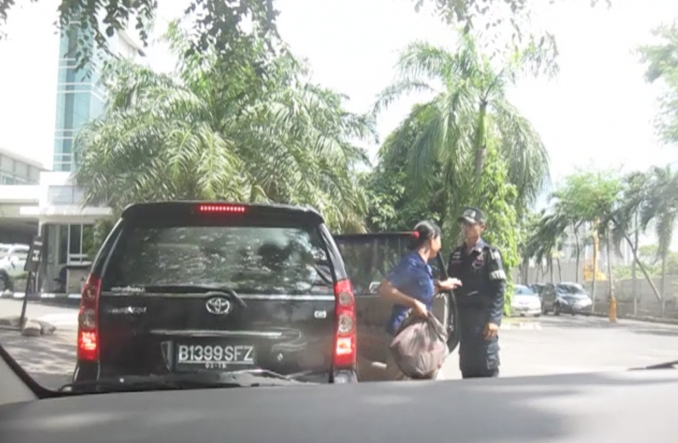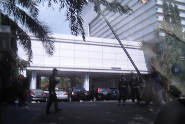 U: Sekitar pukul dua kami sampai di MettroTV. Dari mobil-2 saya melihat dan terus merekamnya dengan kamera poket saya (kamera utama saya ada di mobil yang sama dimana Luvi berada). Saya lihat Luvi turun dari mobil dimana ia bersama para lawyer dari LBH Pers berada. Dia turun sendirian. Kami semua tinggal di dalam mobil karena memang hanya Luvi seoranglah yang dipanggil untuk bertemu. Pihak manajemen ingin bicara terlebih dahulu. Tidak bileh didampingi.