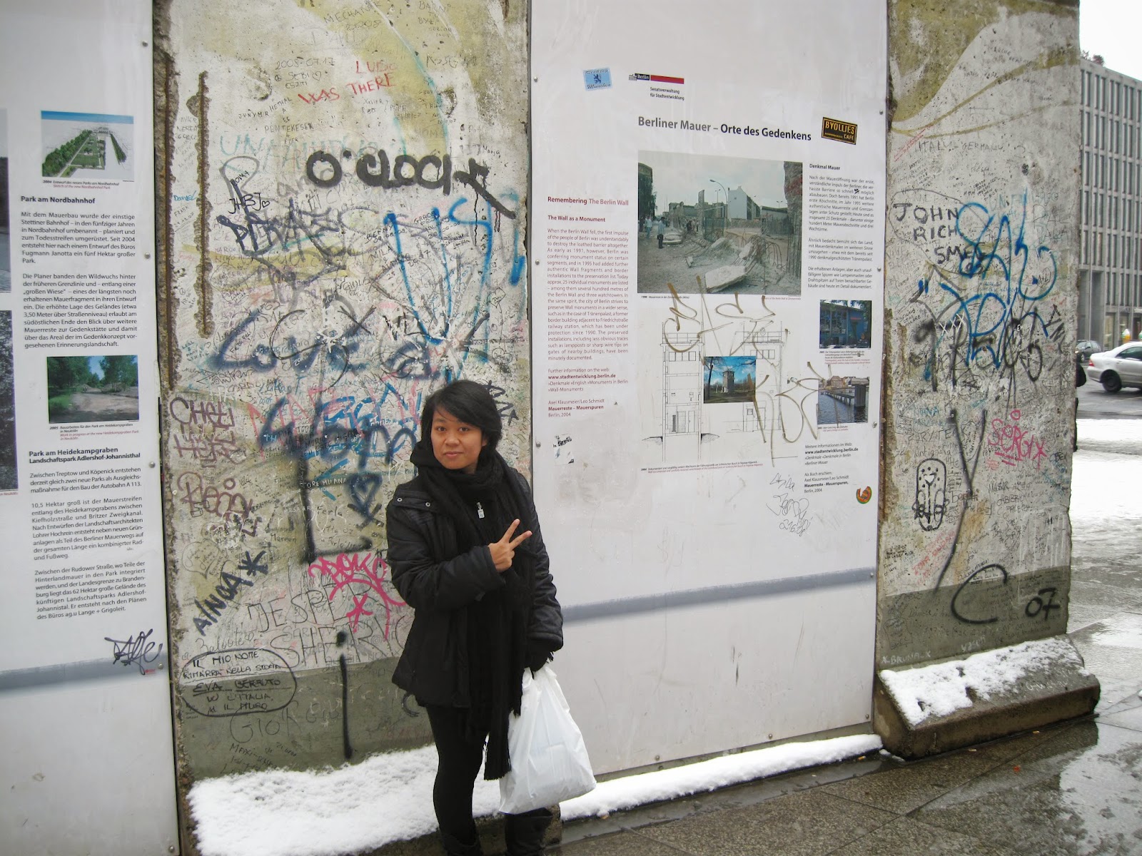 Tempat yang untuk pertamakalinya saya memegang langsung air beku bernama Salju. Memakai jaket musim dingin pinjaman dari Vivian dan mengenakan sepatu boot yang saya beli di daerah entikong perbatasan Malaysia-Kalimantan entah dari sejak kapan tapi nggak tahu harus dipake dimana di Jakarta. Saya ingat saya berdiri di Postdamer Plazt dan terpesona melihat bulir putih halus itu turun ke jalanan. Semuanya begitu dingin dan cakep. Kisah bengis penyiksaan di Auswitch yang menggedor siapa saja yang melewati museum terbuka pengingat penyiksaan di tengah kota Berlin tersebut, seolah hilang dulu untuk sementara.